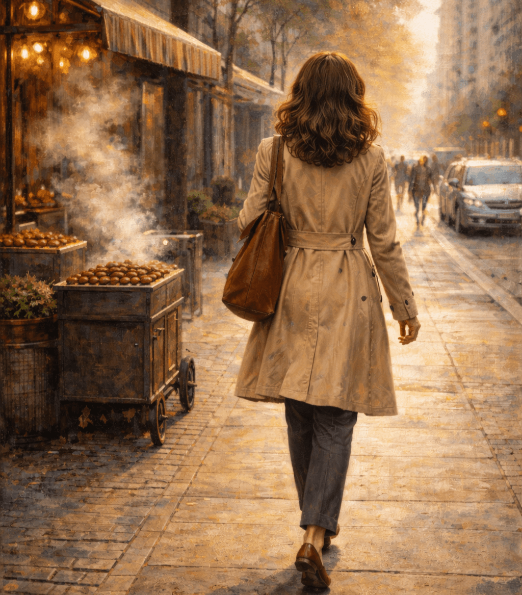 En él, la cotidianidad de una mañana cualquiera se convierte en un acto de valentía silenciosa. María no camina sólo hacia el mundo exterior, sino hacia la responsabilidad íntima de sostener la vida, de proteger aquello que la espera y la define. El poema eleva lo cotidiano a la categoría de gesta humana.